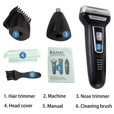Achieve professional grooming at home with the Kemei KM-6558, a powerful 4-in-1 rechargeable grooming machine designed for clean shaving, beard trimming, nose grooming, and hair clipping. Equipped with an AC/rechargeable system, safety cutting heads, and low-noise operation, this all-in-one trimmer is ideal for men who want a smooth, precise, and comfortable grooming experience.